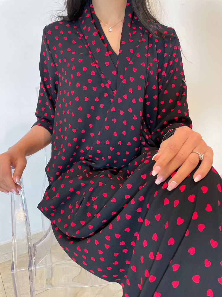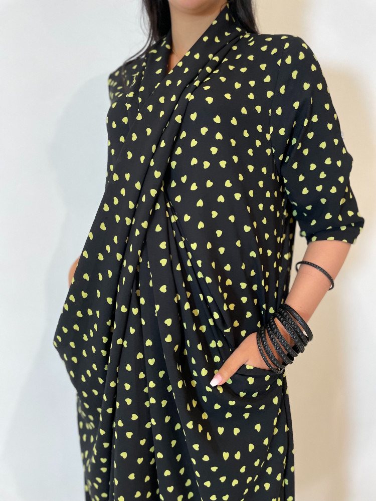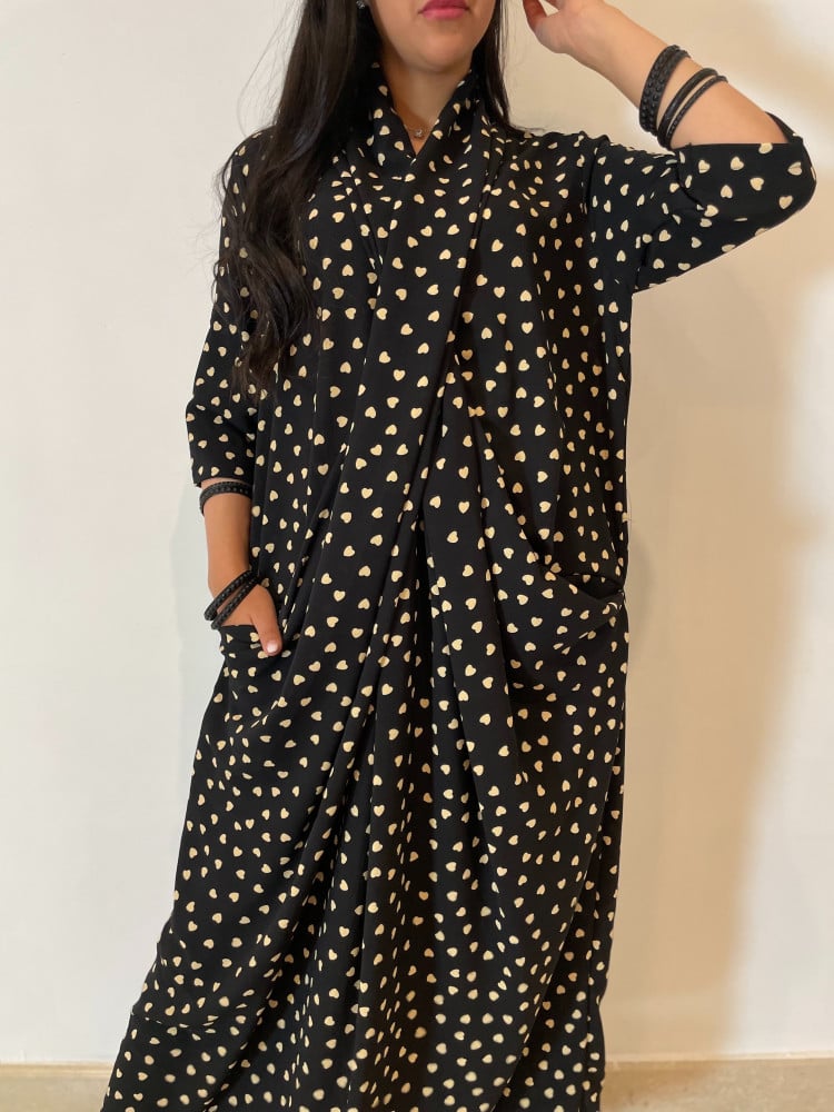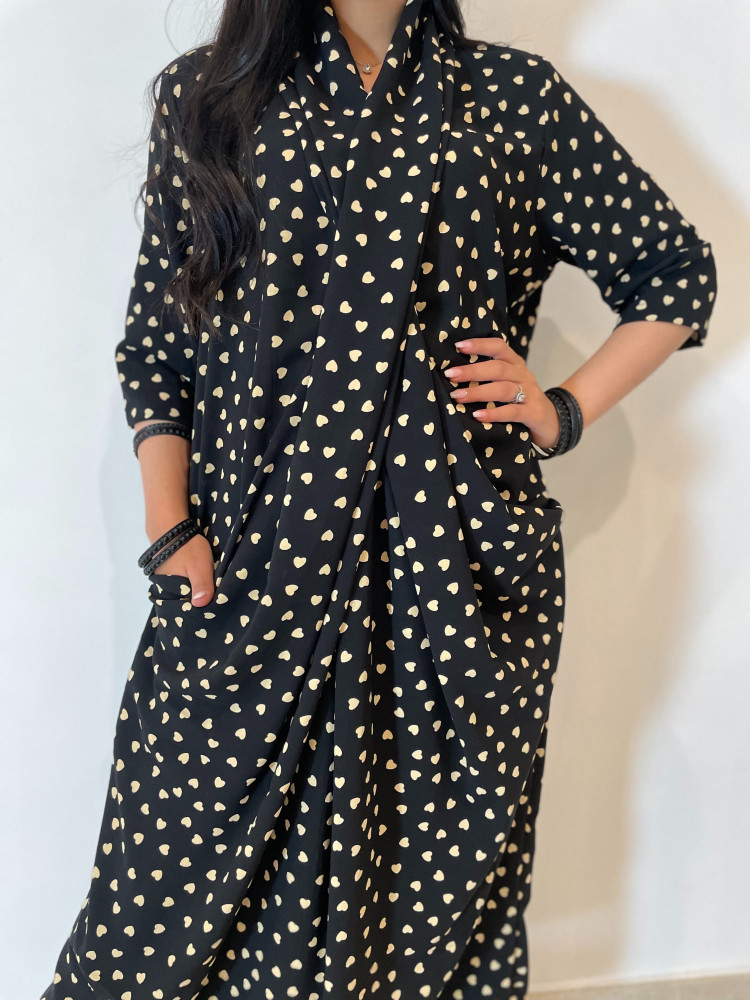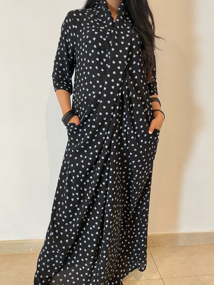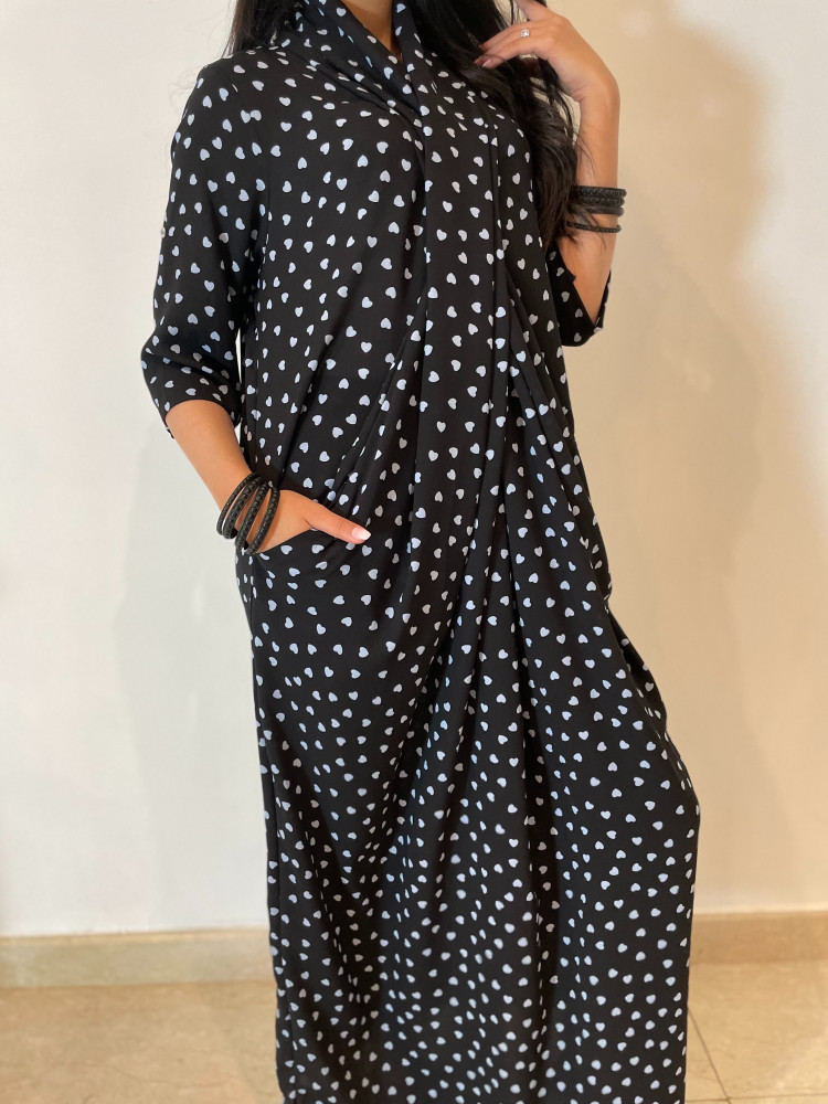 ثويب لف بيج منقط باللون الأسود و بإضافة فراشة رقيقة