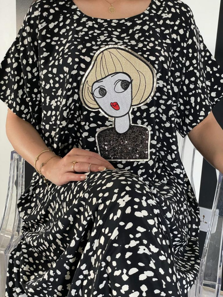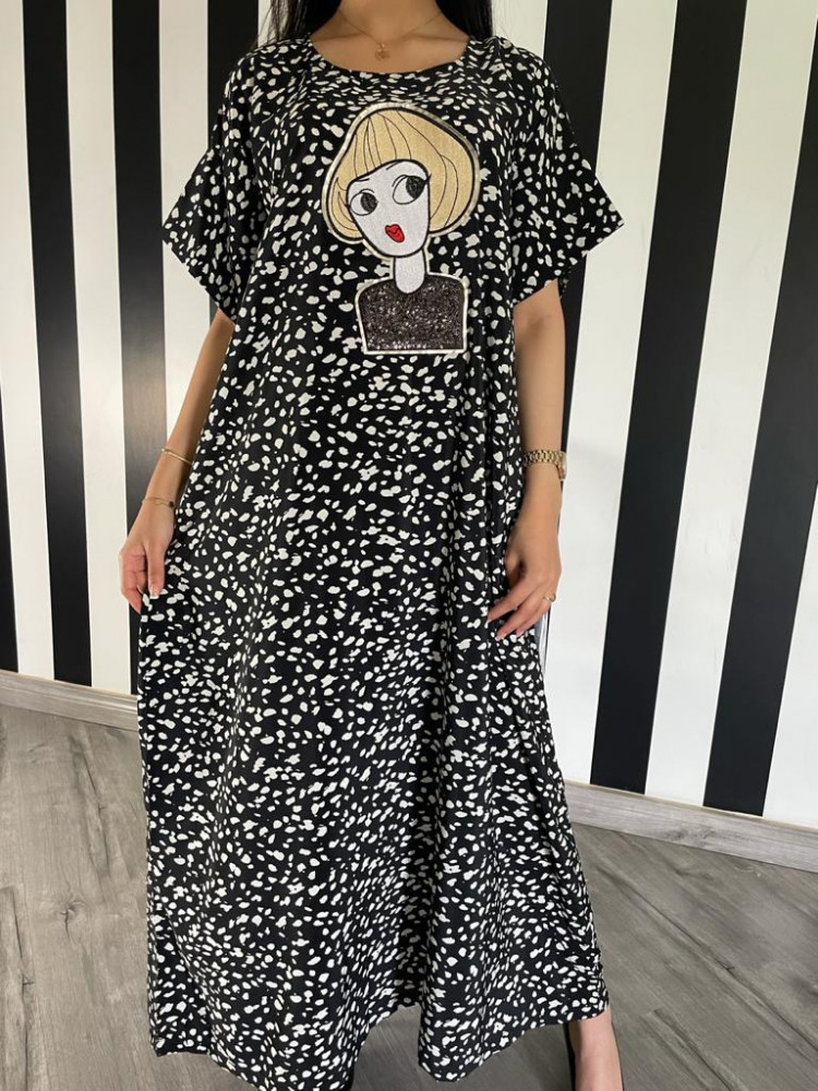 ثويب قطن منقط وبجيوب مخفية وبمزيج لوني عجيب