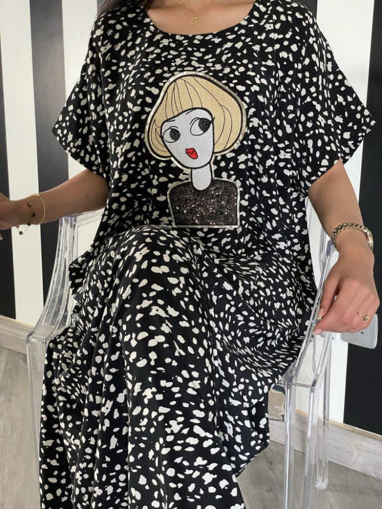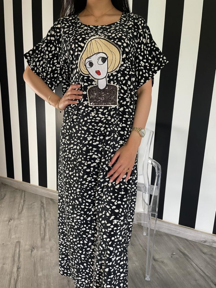 ثويب لف بخامتنا الباردة وبنقشة تهبل، الأكمام قابلة للتعديل تلبسينها بطريقتين