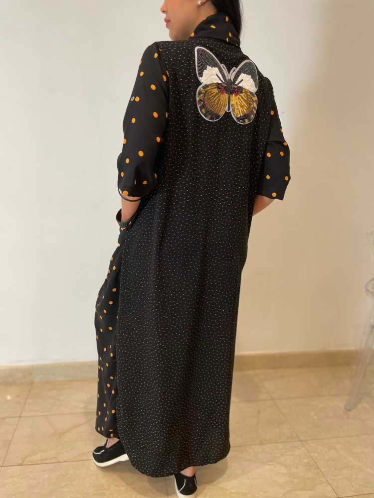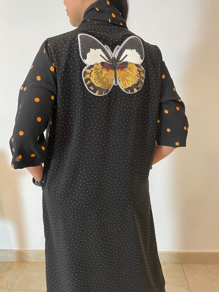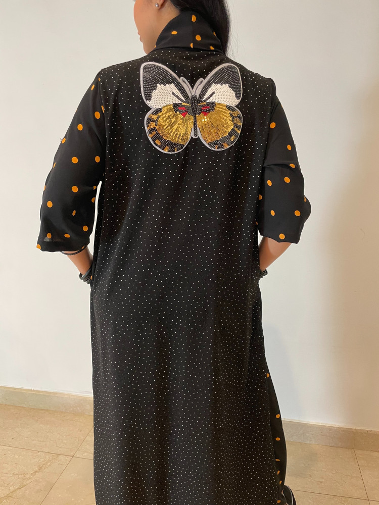 ثويب لف منقط بخامتنا الخفيفة الباردة وبإضافة فراشة من الخلف