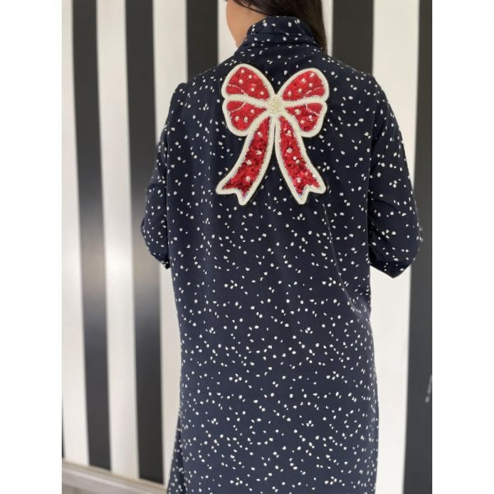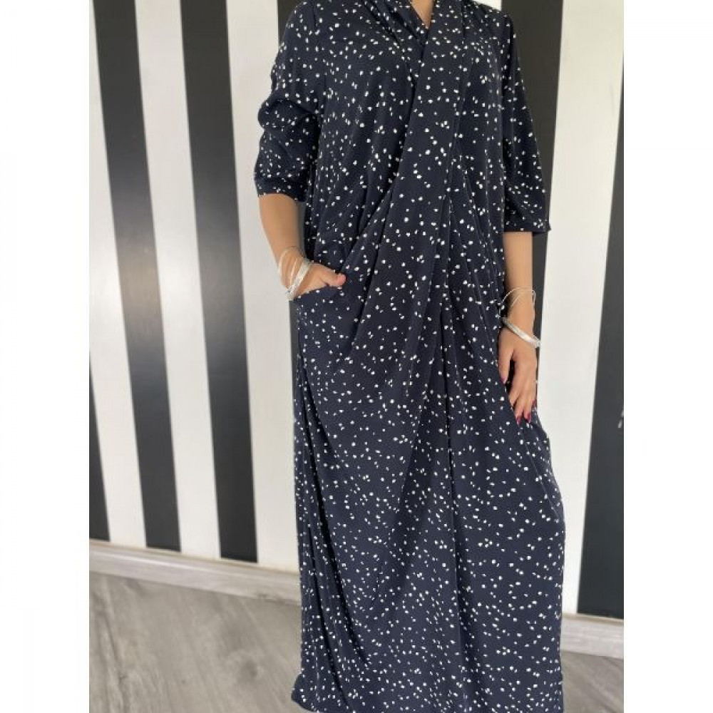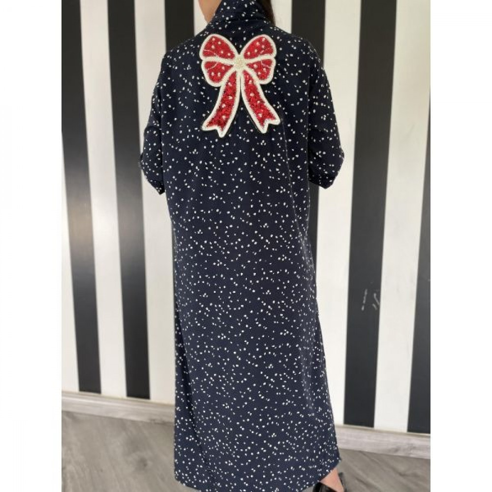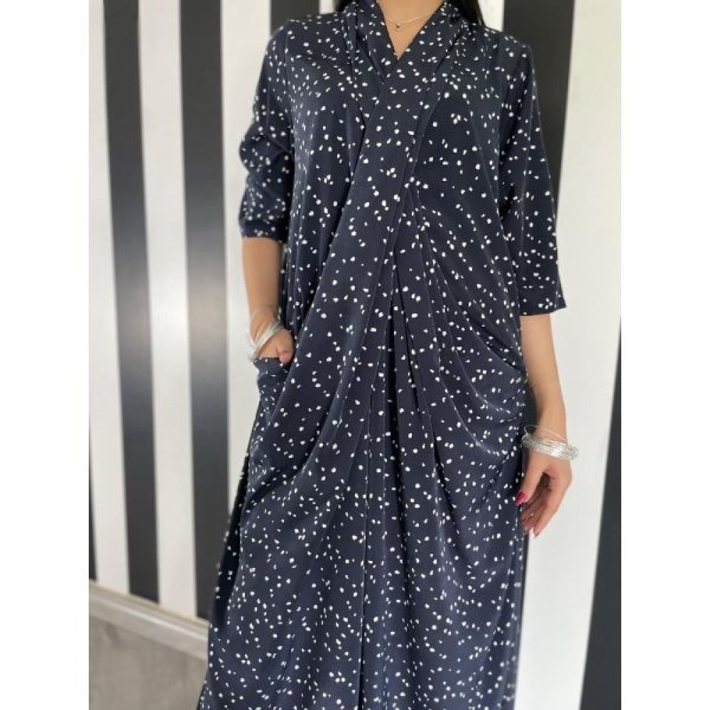 ثويب لف اسود منقط باللون الأبيض بإضافة مميزة من الخلف