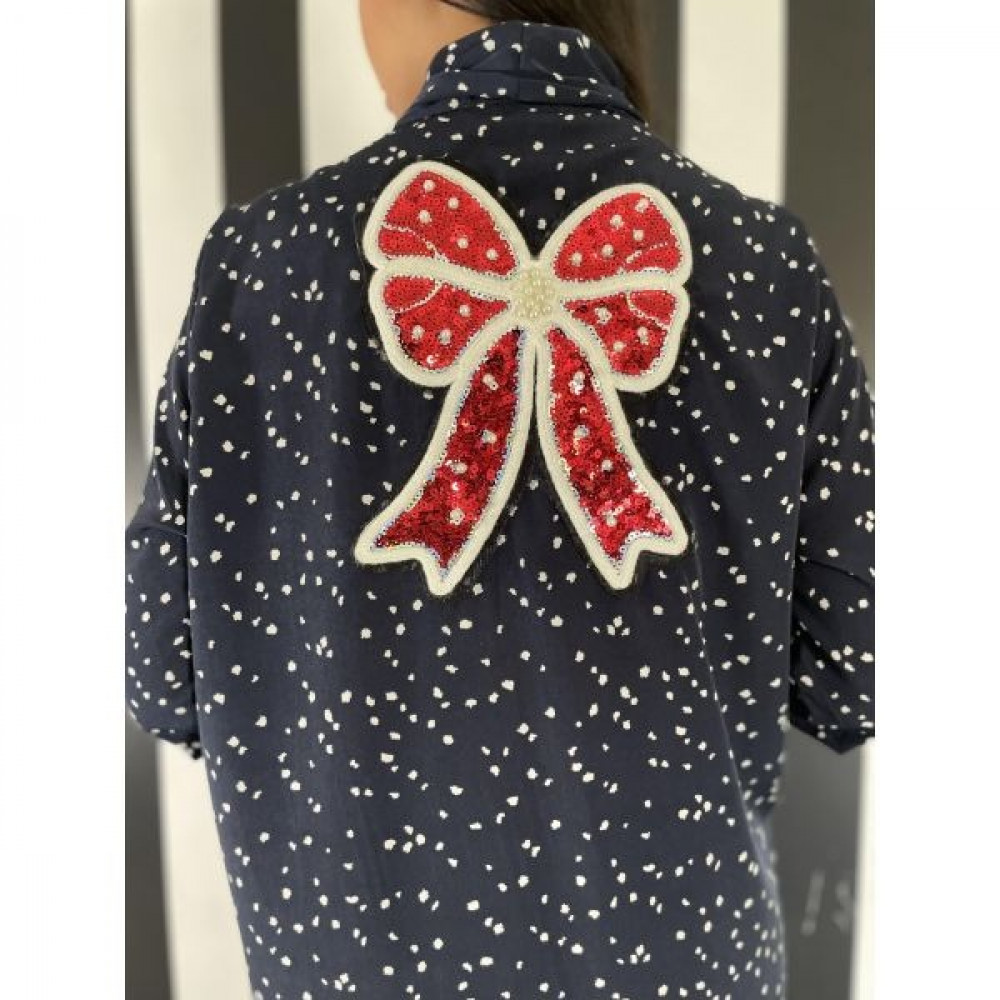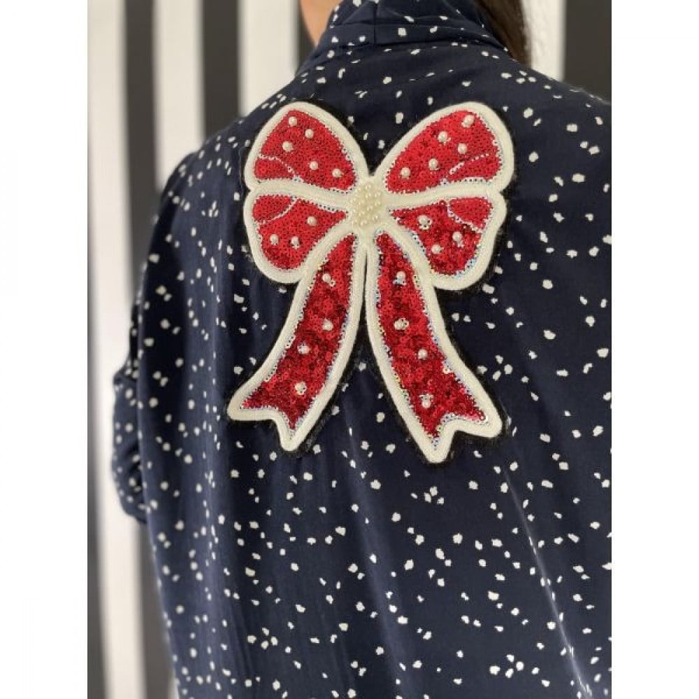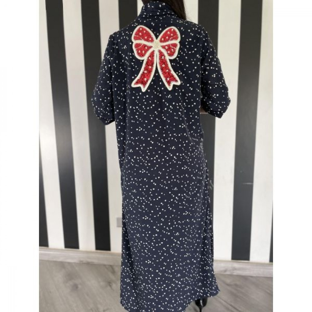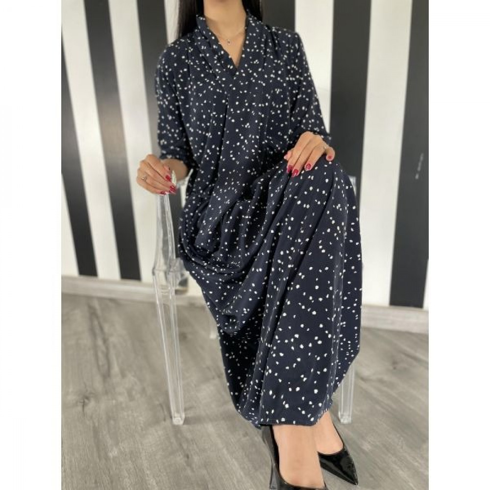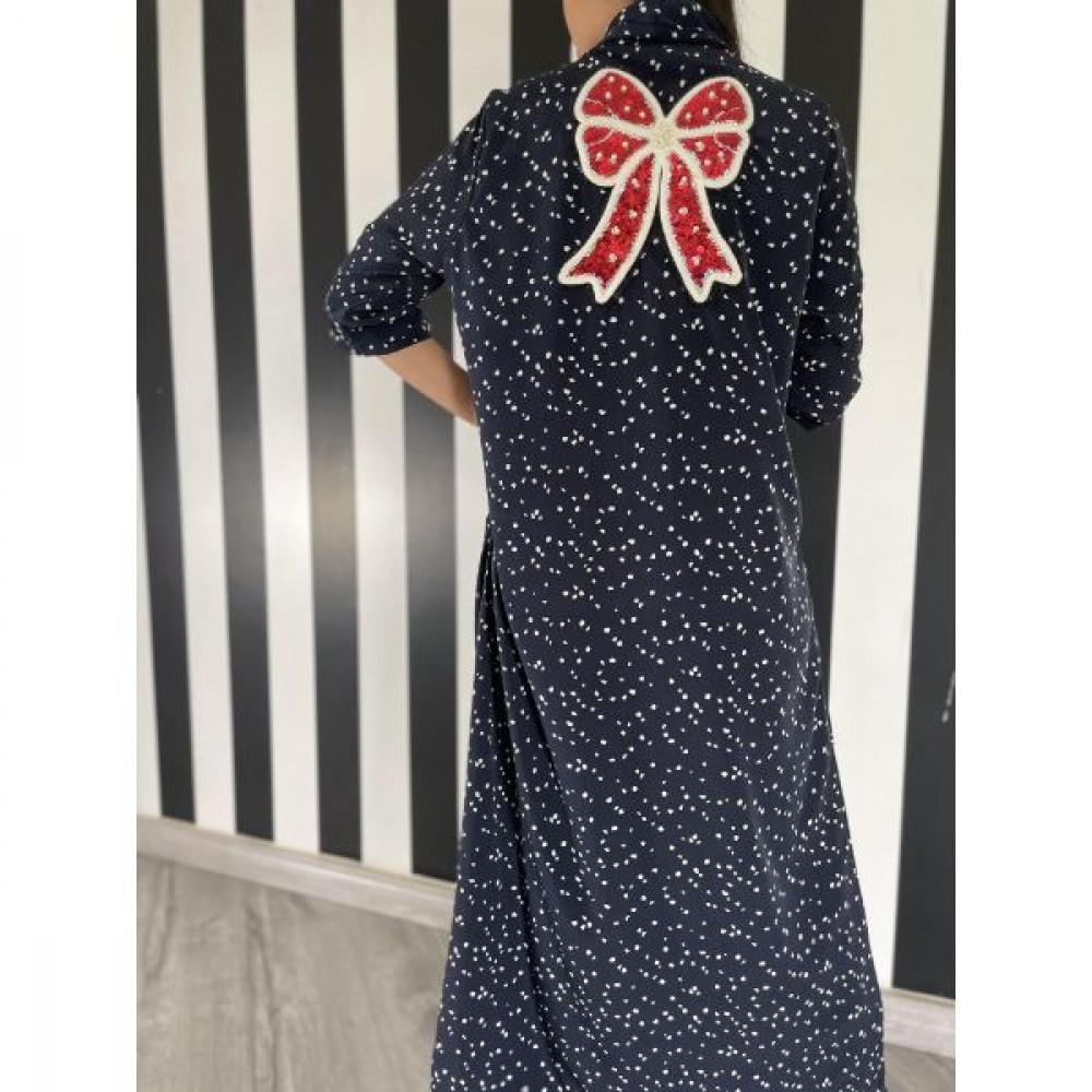 ثويب لف اسود منقط باللون الأبيض بإضافة مميزة من الخلف