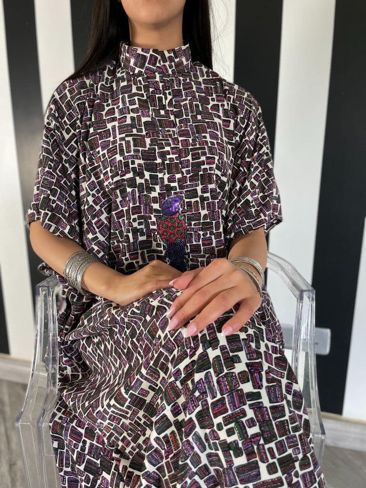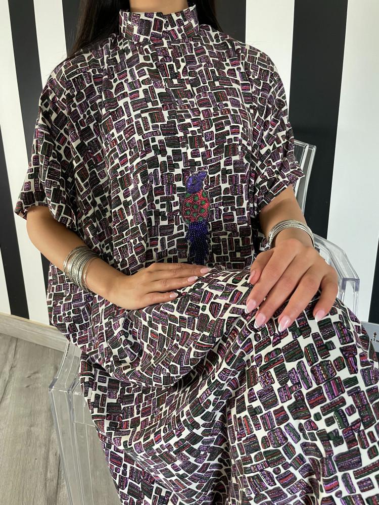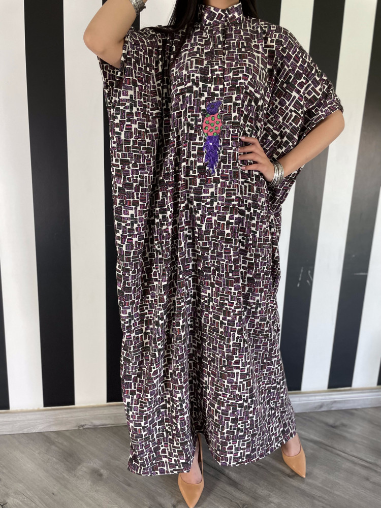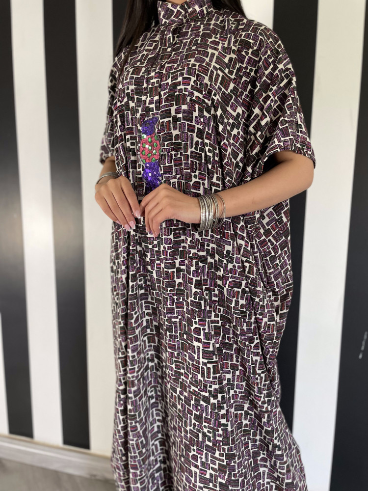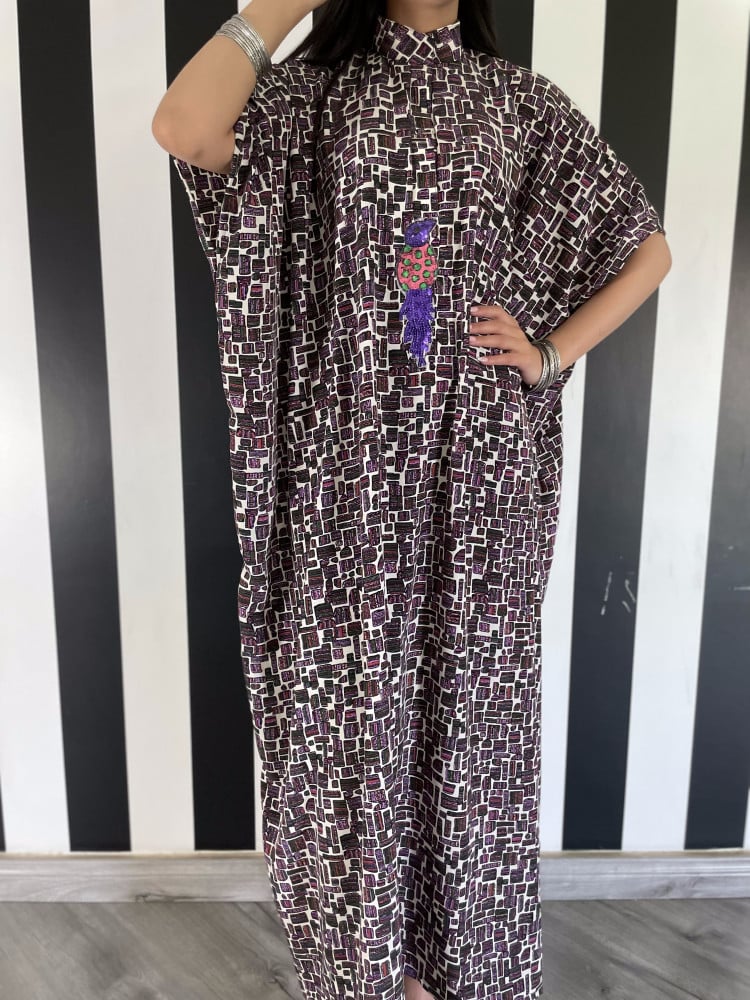 ثويب يومي بألوان طبعات أنيقة وخفيفة باردة بإضافة مميزة