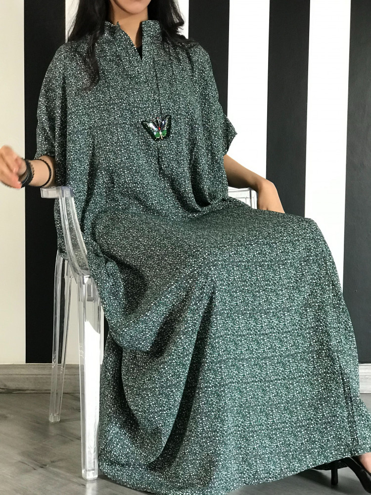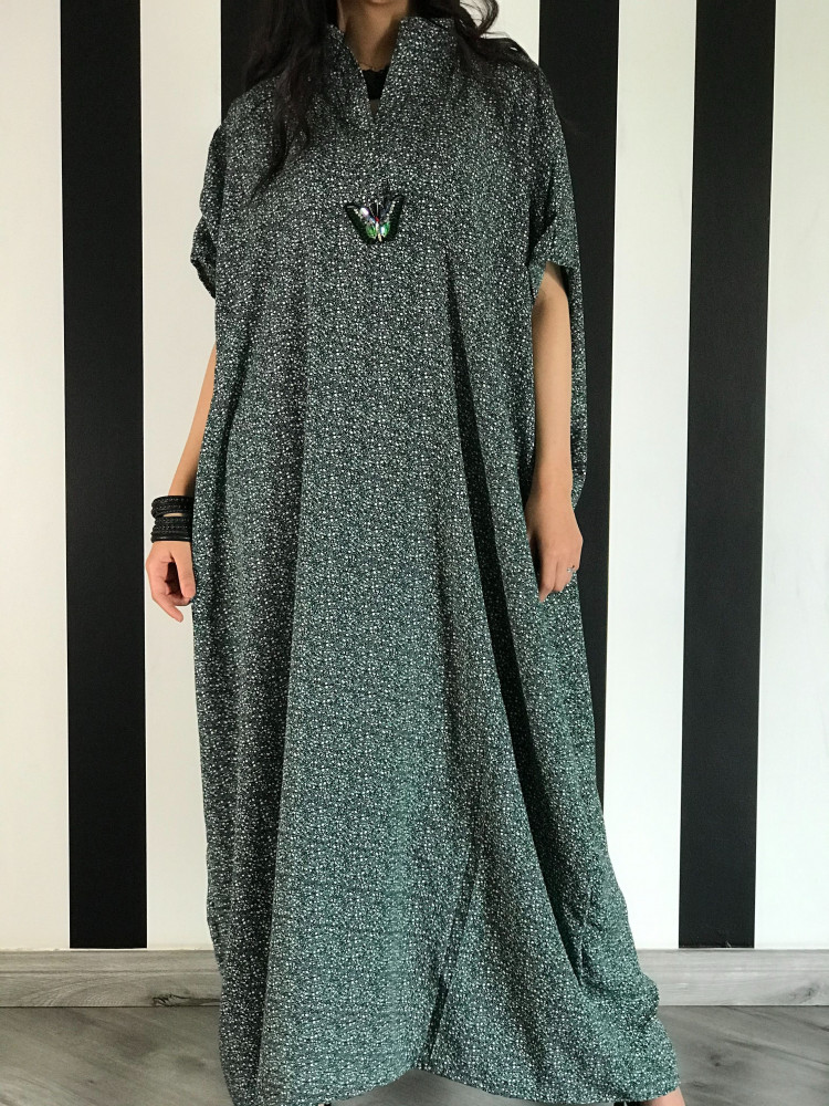 ثويب لف بخامتنا الباردة وبنقشة تهبل، الأكمام قابلة للتعديل تلبسينها بطريقتين