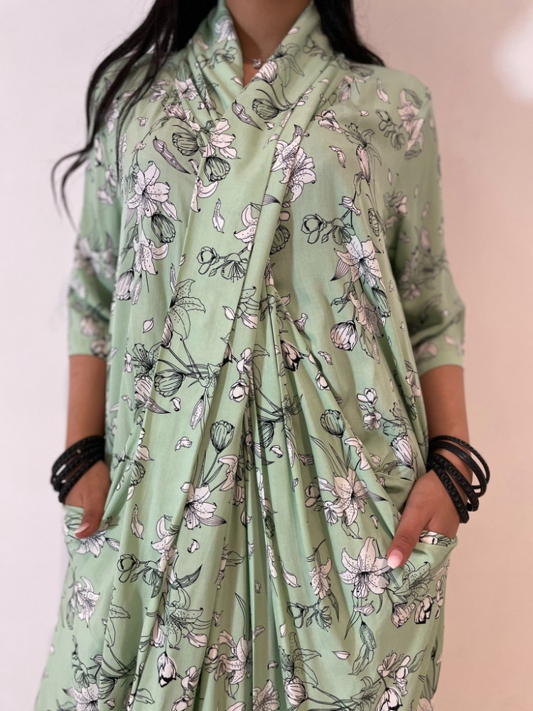 ثويب لف بألوان صيفية منعشة وخامة خفيفة باردة