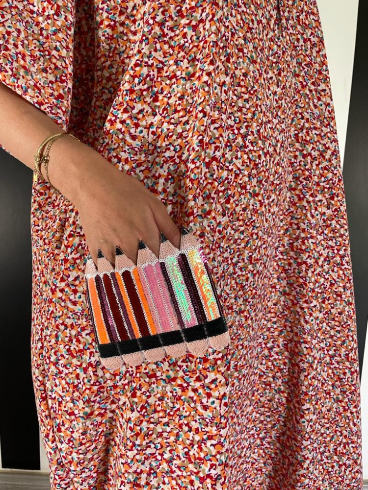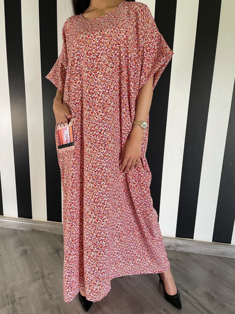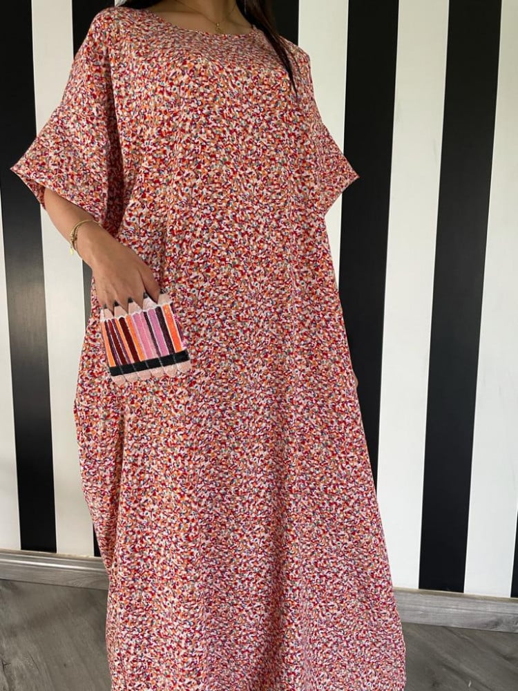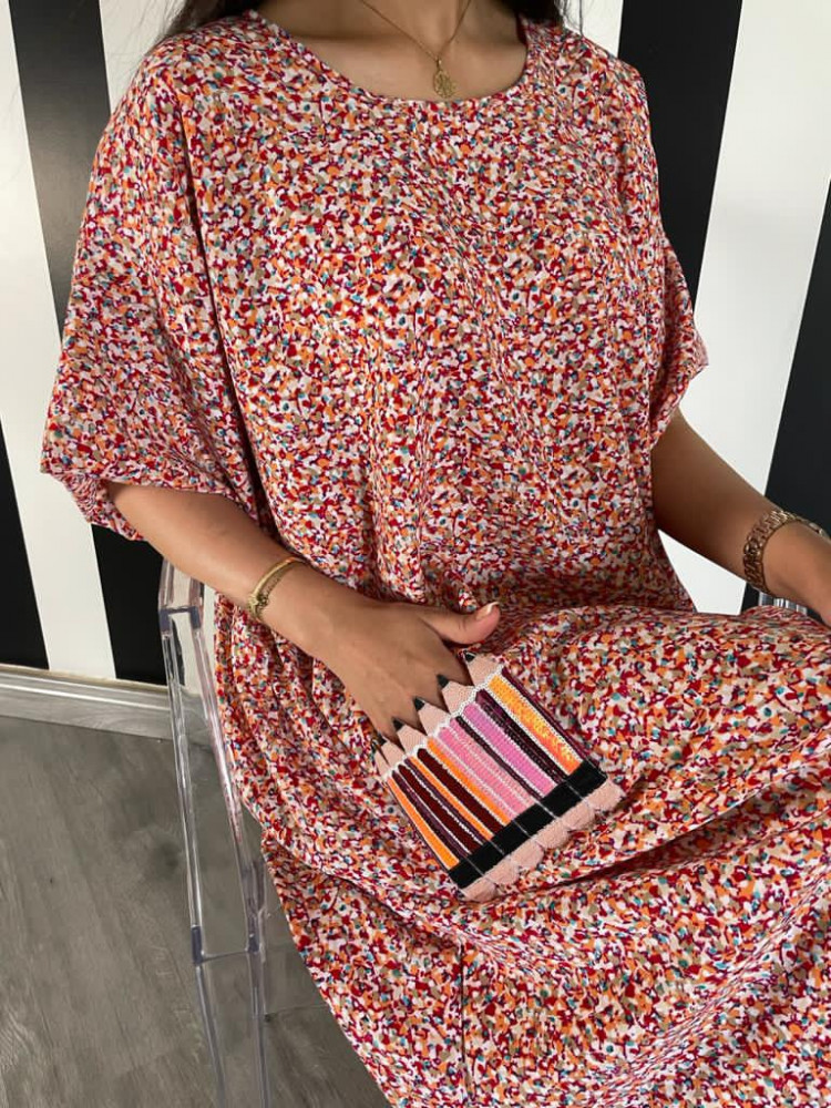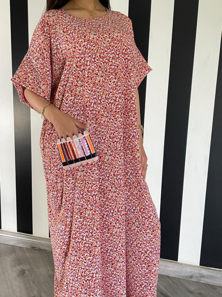 ثويب قطن منقط وبجيوب مخفية وبمزيج لوني عجيب