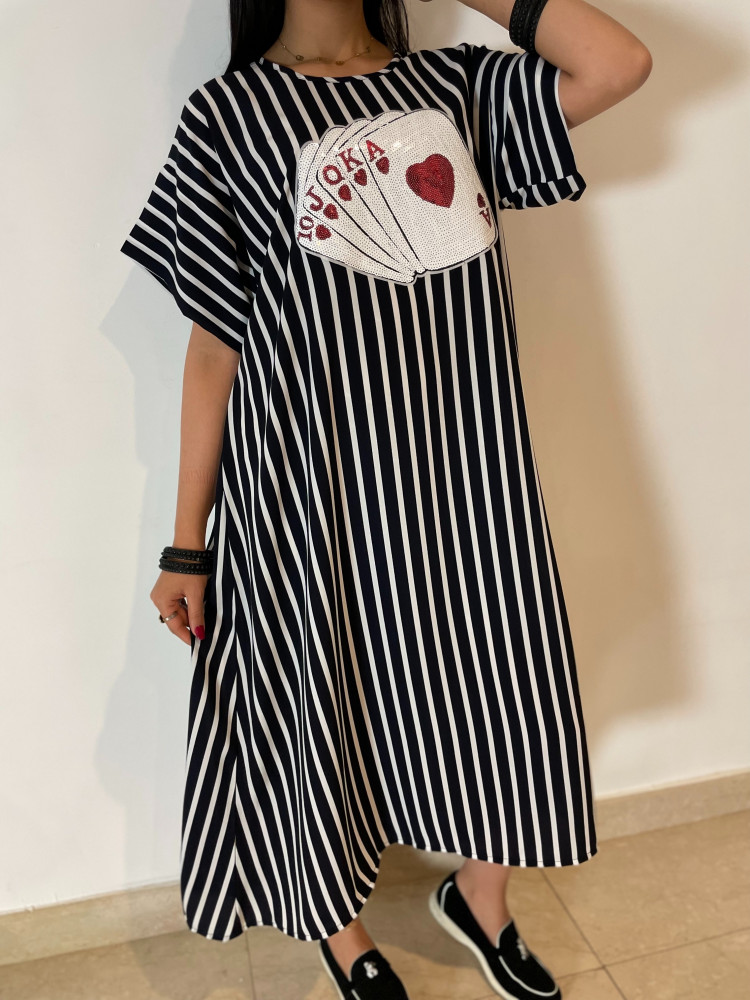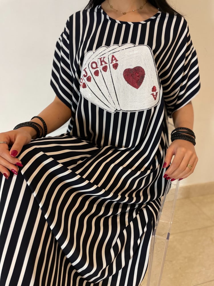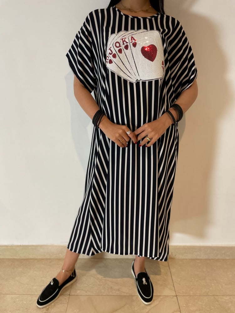 ثويب لف مخطط ازرق وابيض بخامتنا الخفيفة الباردة وبإضافة مميزة