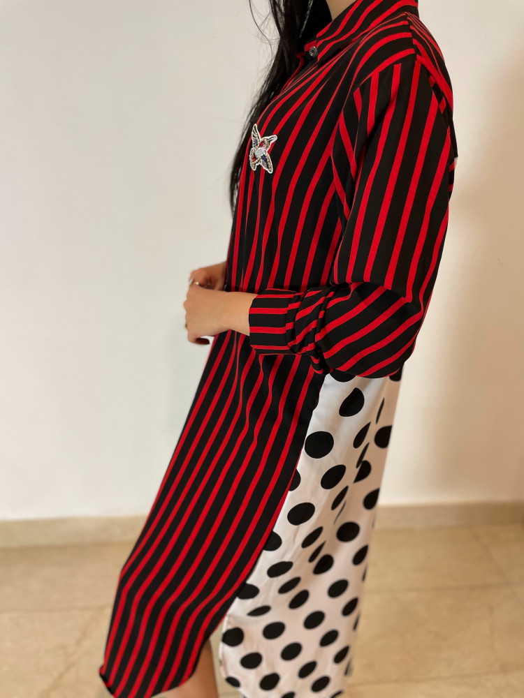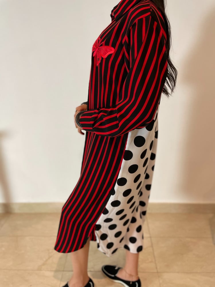 ثويب لف بيج منقط باللون الأسود و بإضافة فراشة رقيقة