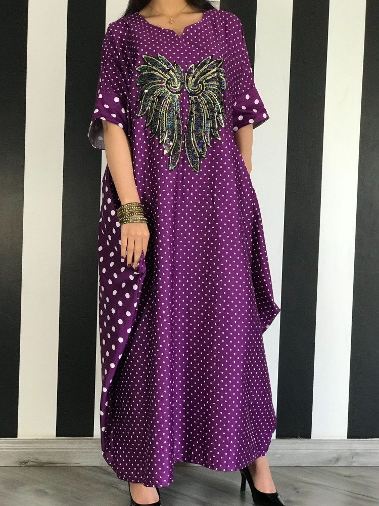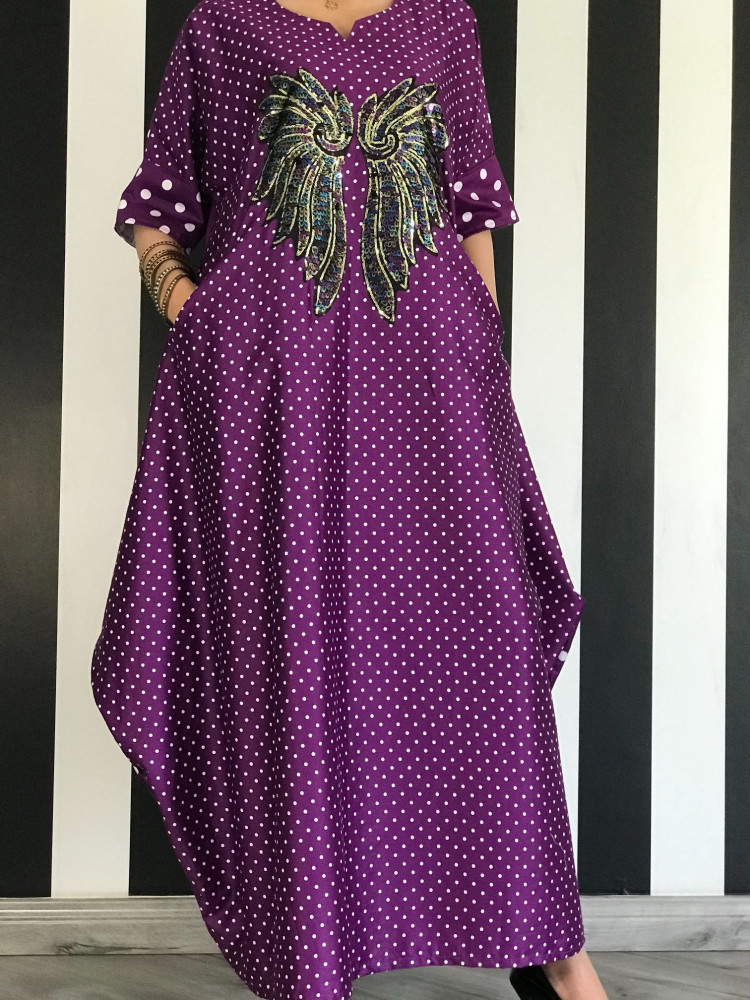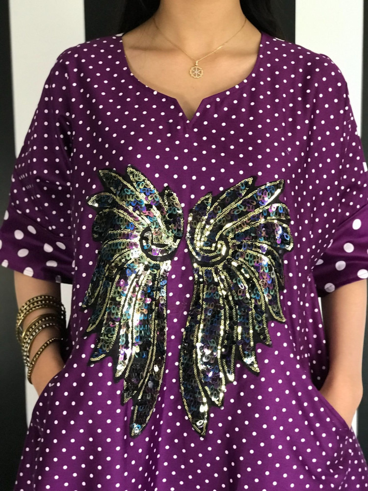 ثويب قطن منقط وبجيوب مخفية وبأجنحة مترترة