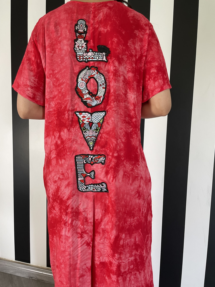 ثويب قطن منقط وبجيوب مخفية وبمزيج لوني عجيب