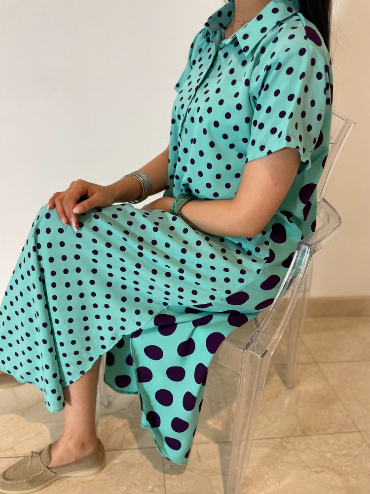 فسيتين اخضر منقط بنفسجي ناعم انيق رقيق بارد مريح