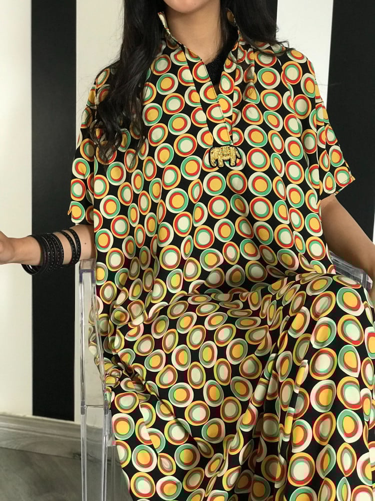 ثويب يومي بألوان زاهية وطبعة الشفايف المترترة .. باردة وخفيفة