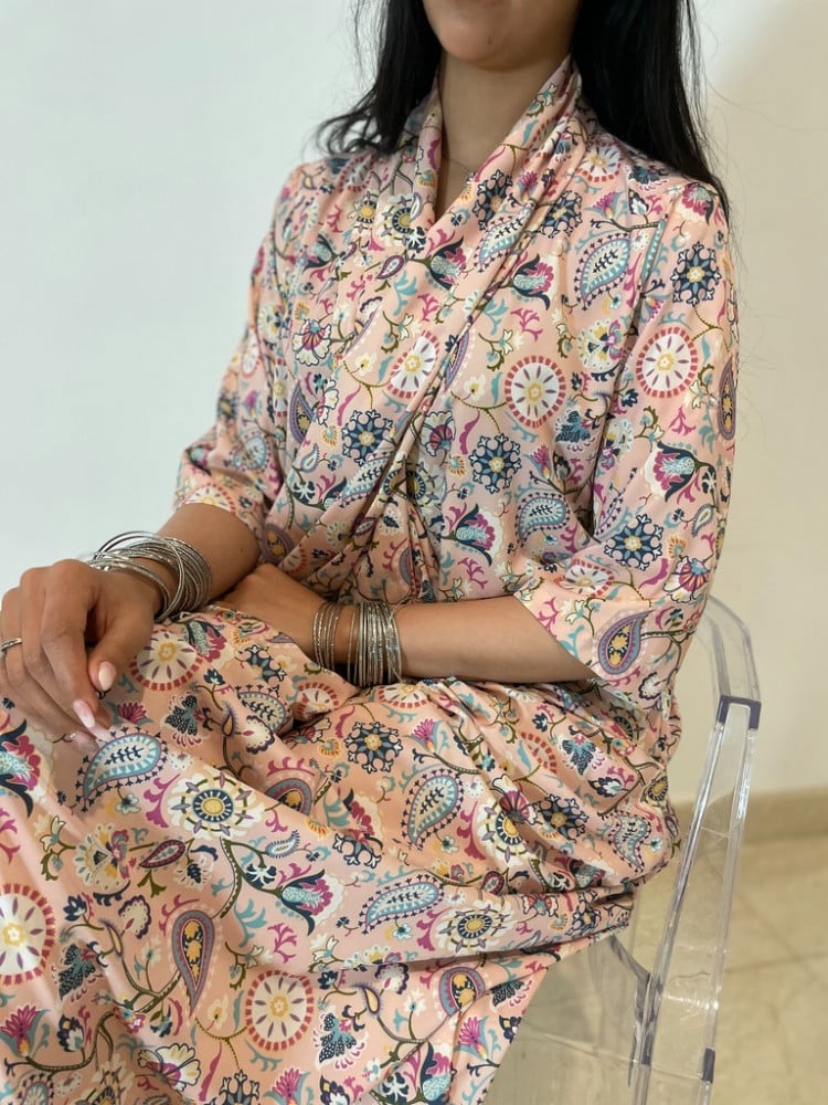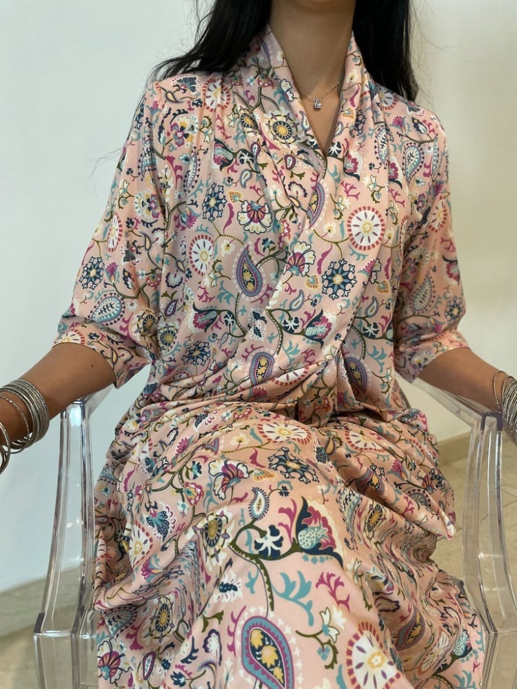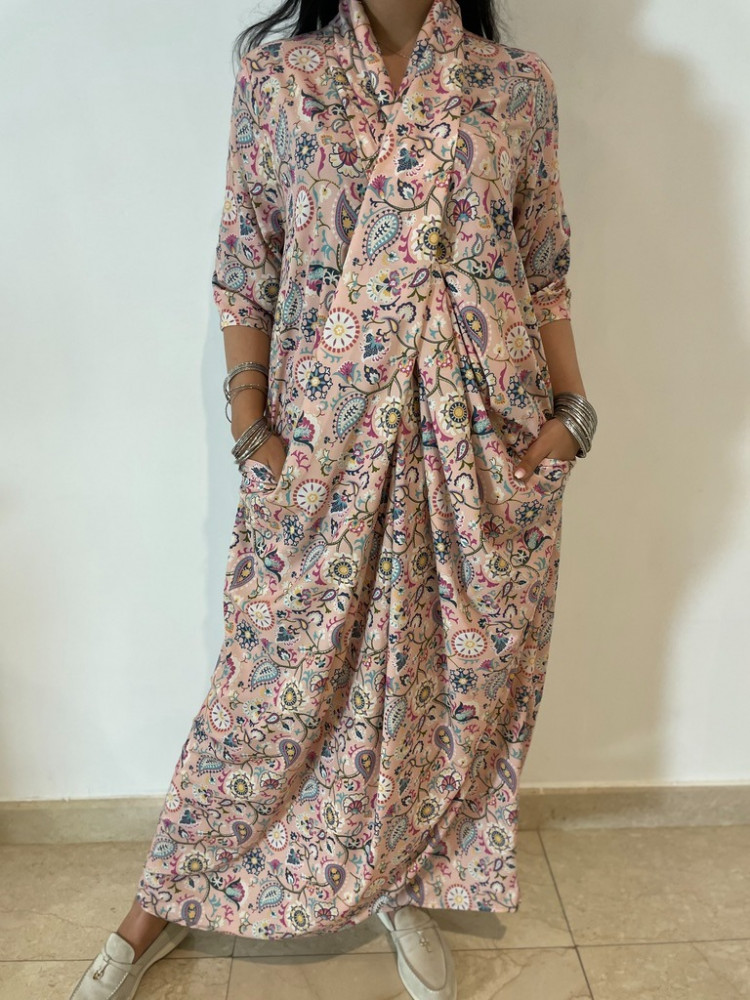 ثويب لف بتدرجات لونية الأكمام قابلة للتعديل تلبسينها بطريقتين