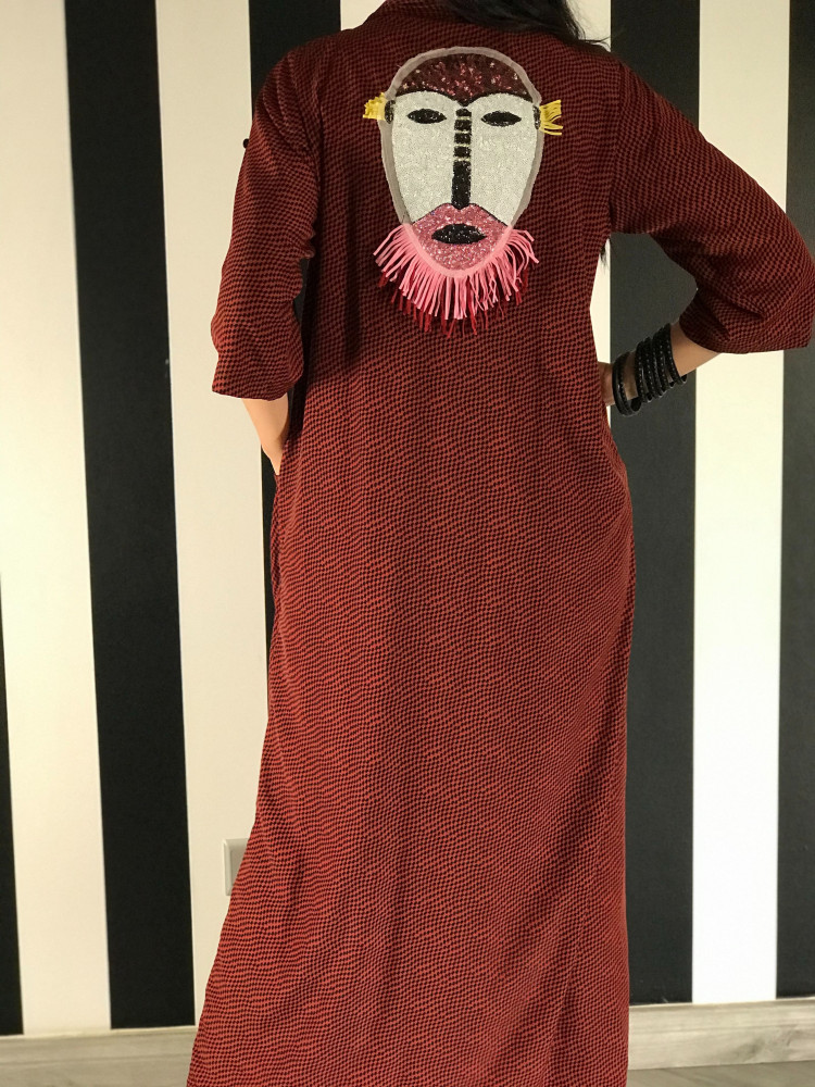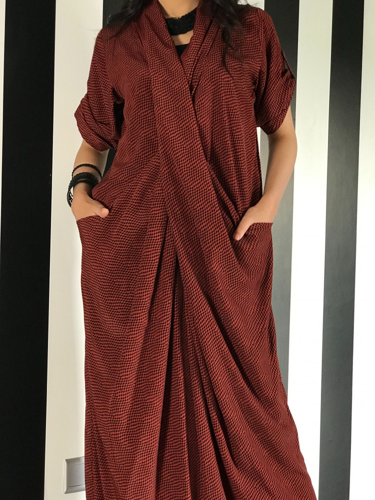 ثويب قطن منقط وبجيوب مخفية وبأجنحة مترترة