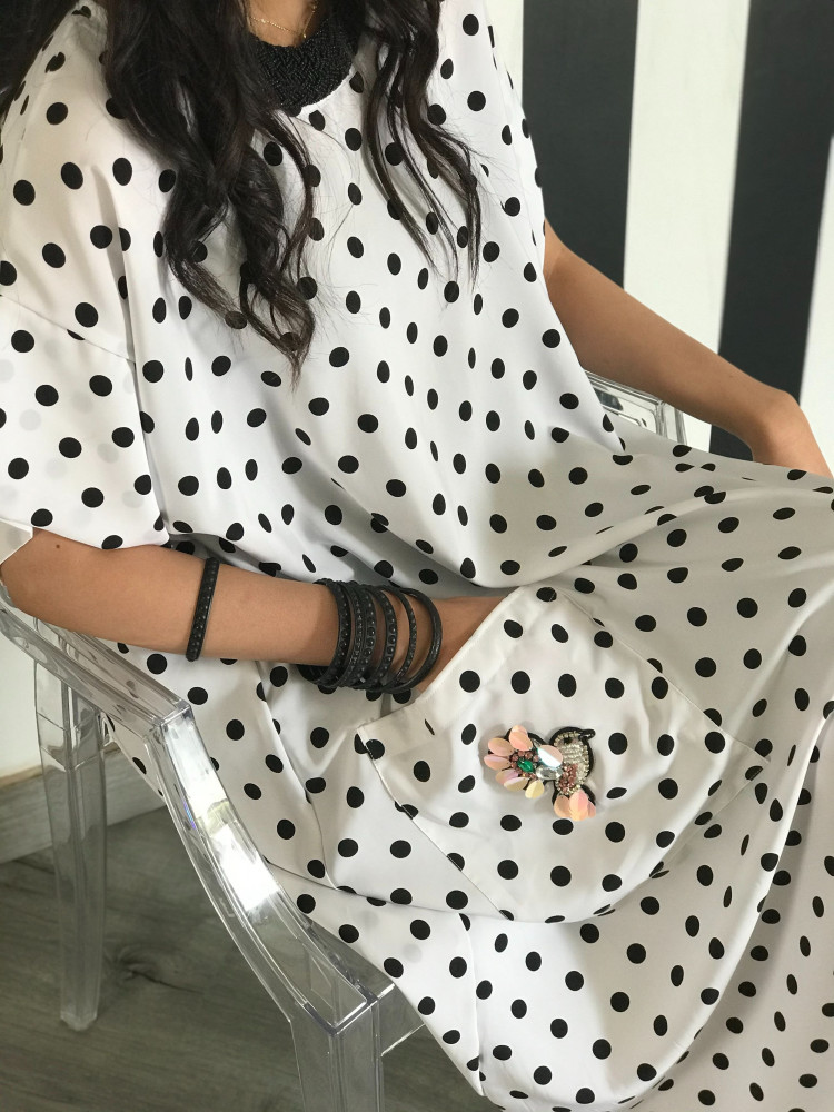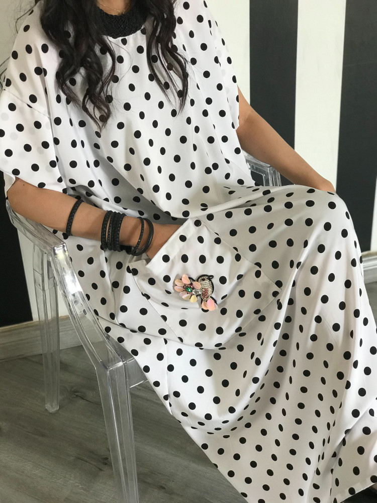 ثويب لف بخامتنا الباردة وبنقشة تهبل، الأكمام قابلة للتعديل تلبسينها بطريقتين