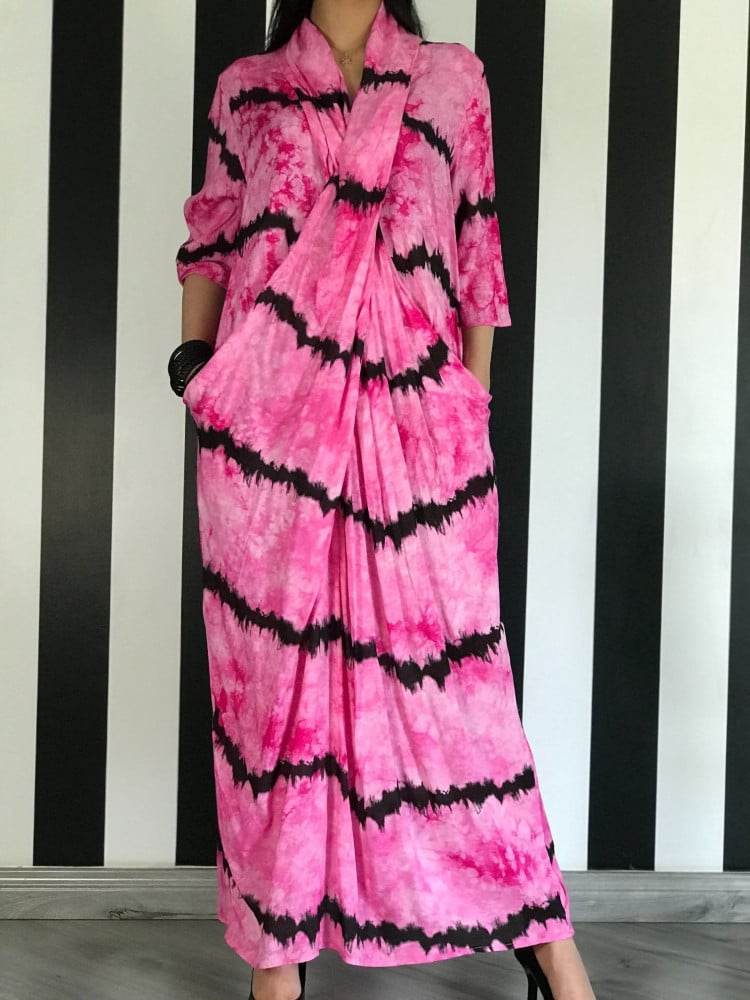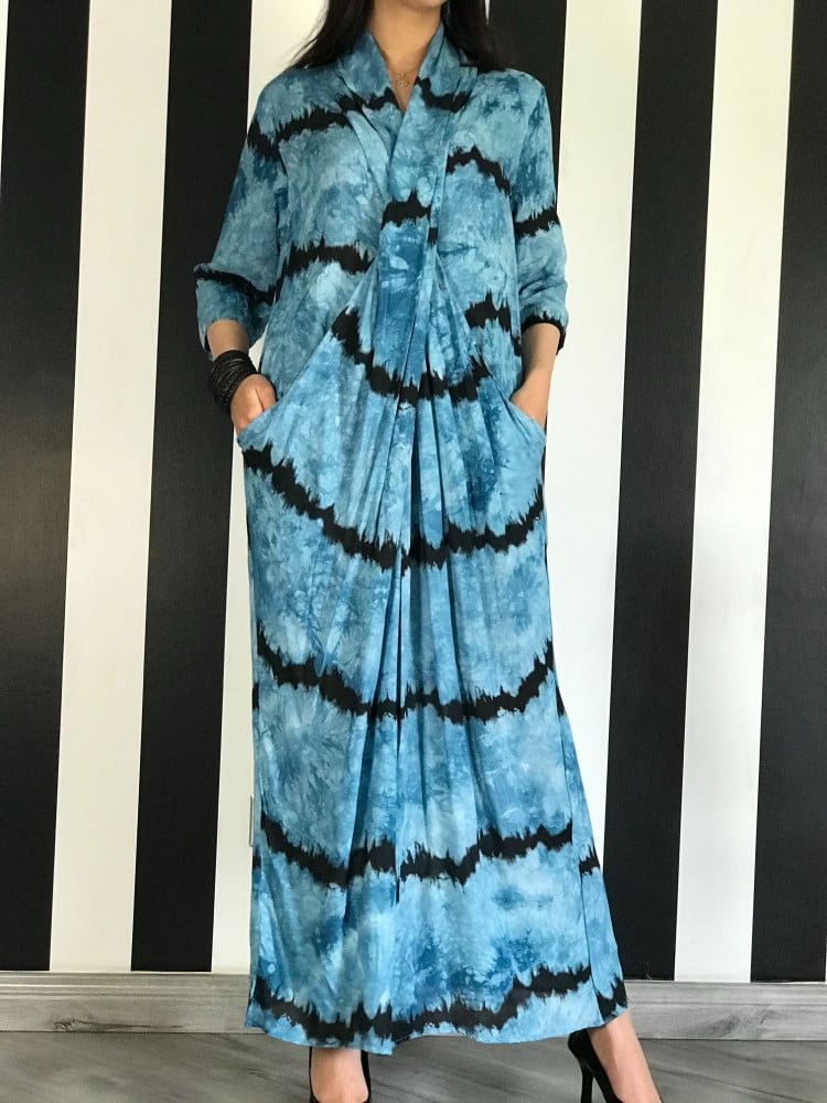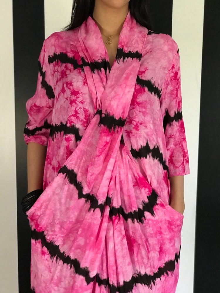 ثويب اللف TieDiy الأكمام قابلة للتعديل تلبسينها بطريقتين
