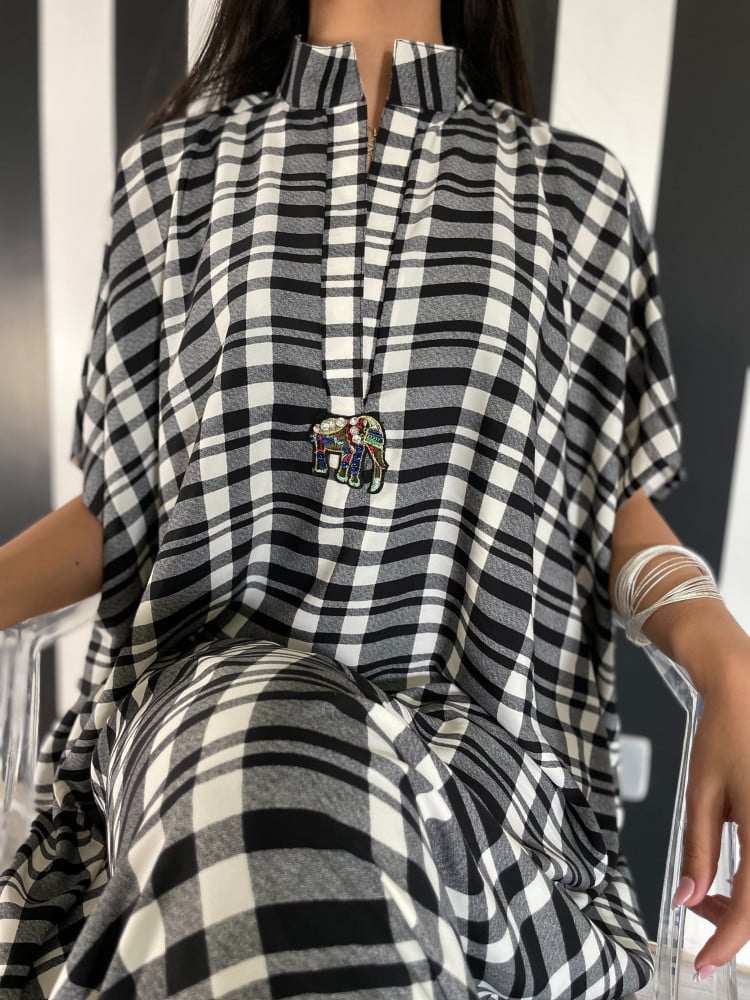 ثويب يومي كادوهات ابيض واسود باضافة فيل مميليح