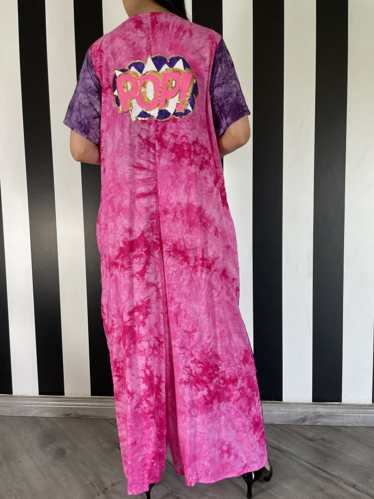 ثويب لف بخامتنا الباردة وبنقشة تهبل، الأكمام قابلة للتعديل تلبسينها بطريقتين