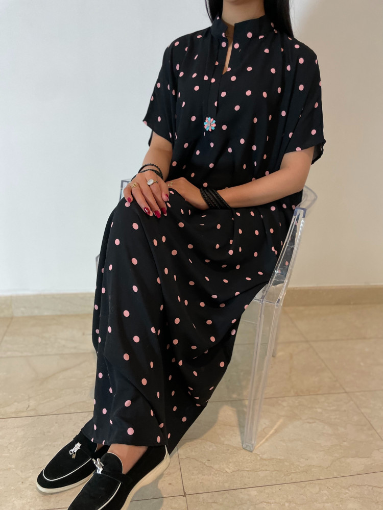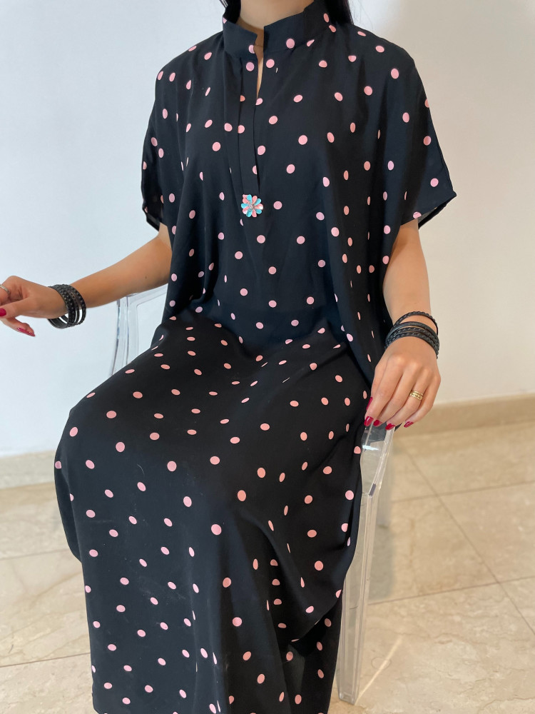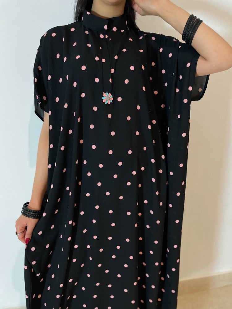 ثويب لف مشمشي منقط باللون الأسود و بإضافة حبيبنا الجمل