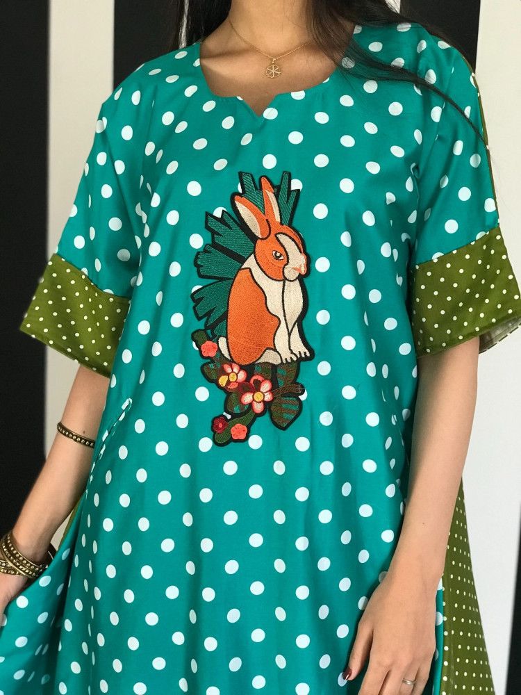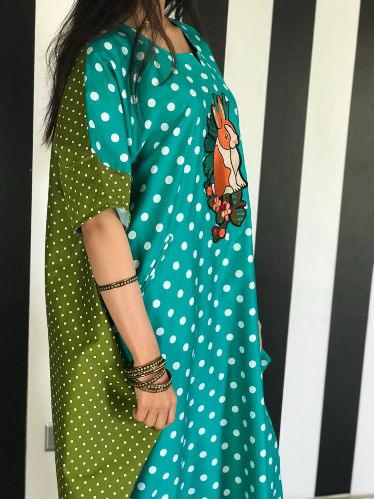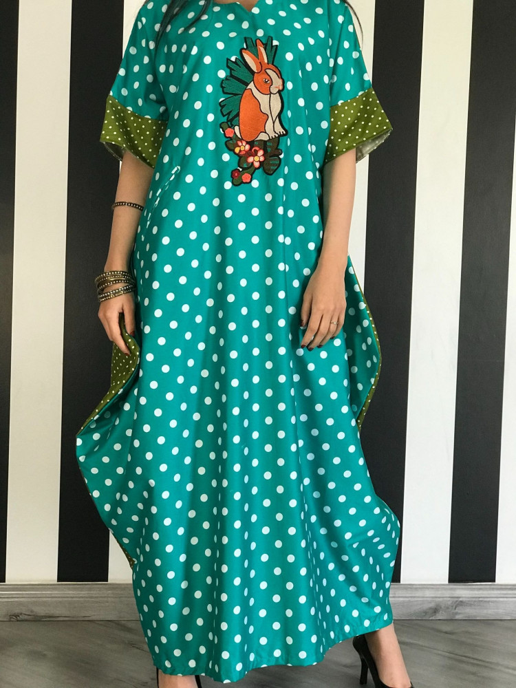 ثويب قطن منقط وبجيوب مخفية وبمزيج لوني عجيب