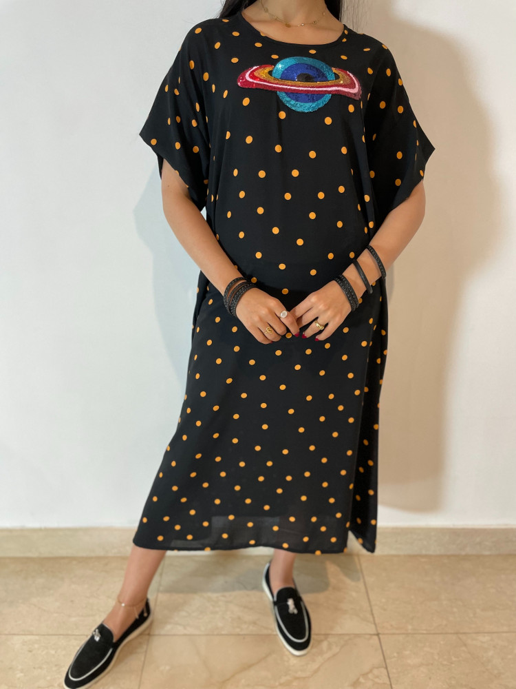 ثويب لف منقط بخامتنا الخفيفة الباردة وبإضافة فراشة من الخلف